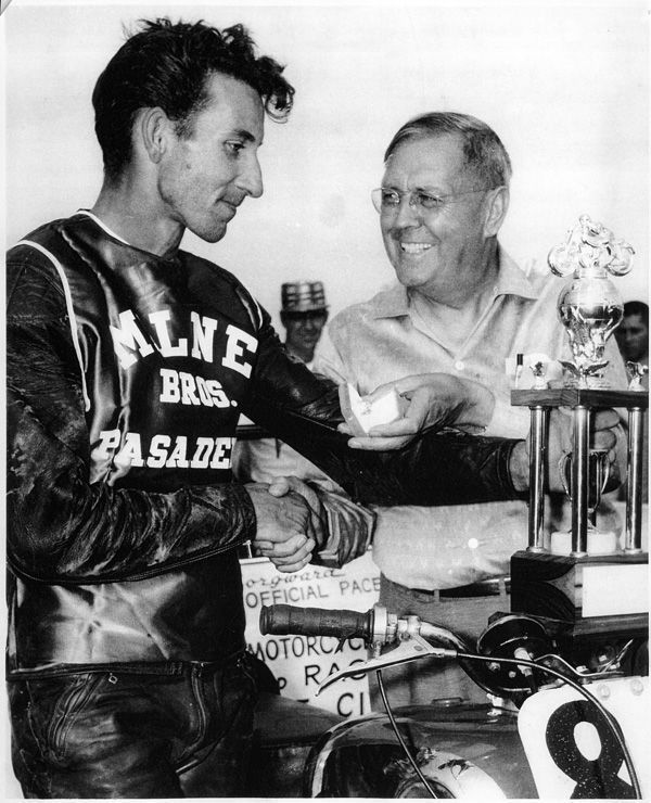 Everett was entering his fourth year in the pro ranks in 1959. He seemed to be on the verge of making even a bigger impact on the national scene when he was sadly struck down in a multiple-bike accident on June 19 during the weekly Friday night program at Ascot Park. Everett lingered for three days before succumbing to his injuries on June 22. He was 28. Everett’s death struck the racing community, especially in Southern California, very hard. A fine, humble, soft-spoken and humorous man, Everett was described by many as the best-liked rider by both fans and fellow competitors.