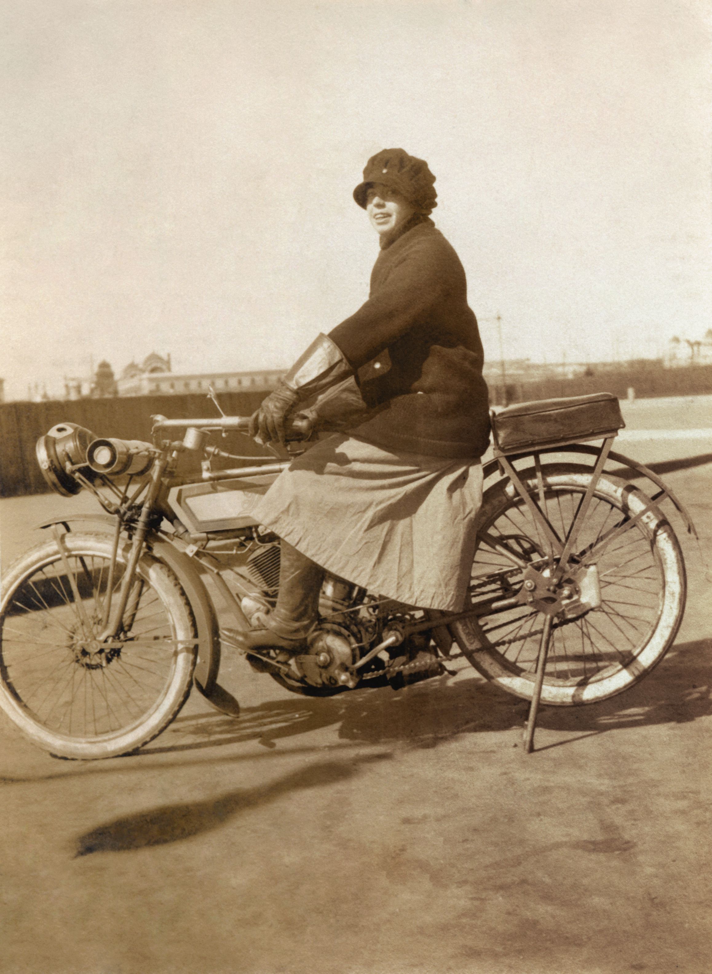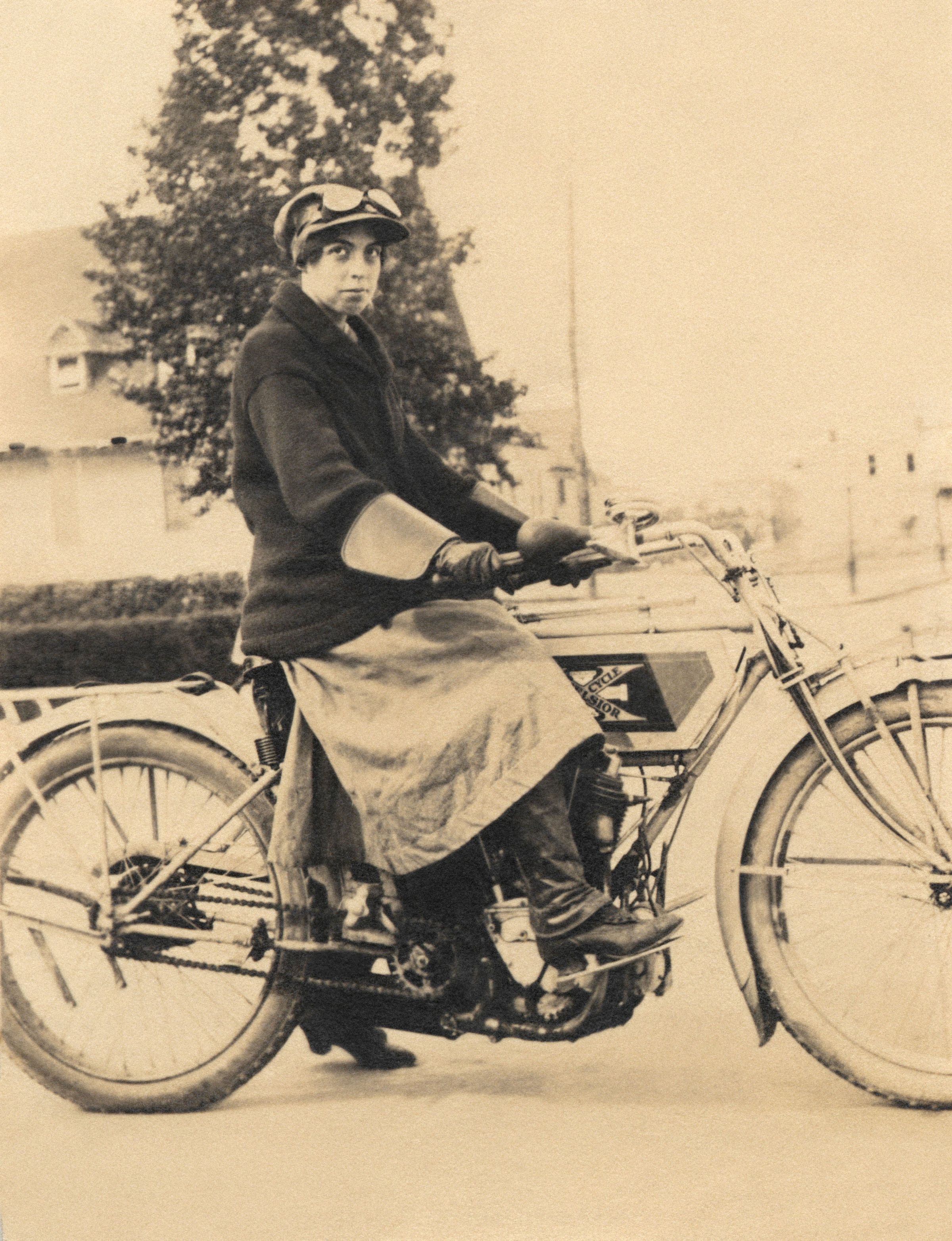 Instead of heeding the doctor’s concerns, she used the inheritance left from her father and purchased a 1915 Harley-Davidson 3-speed twin and a Rogers sidecar for her robust mother and luggage.