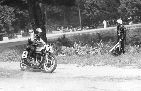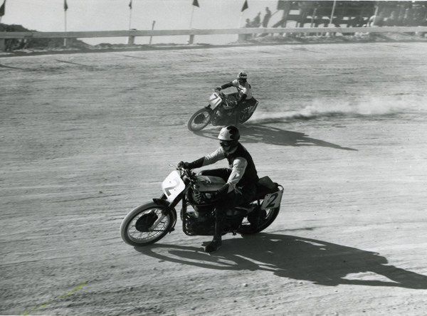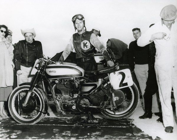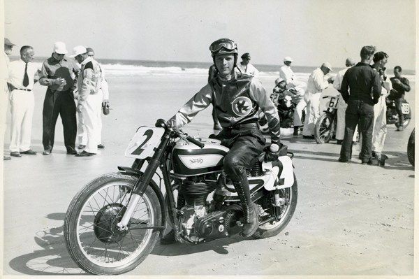 "I didn't try to break any records early on. With 100 bikes on the course the traffic was pretty thick and I just wanted to stay out of trouble. The Harleys and Indians had more brute horsepower and would pull past me on the soft sand of the beach side. But, the Norton had a lot more top speed back down the paved highway side and I'd really fly past people."