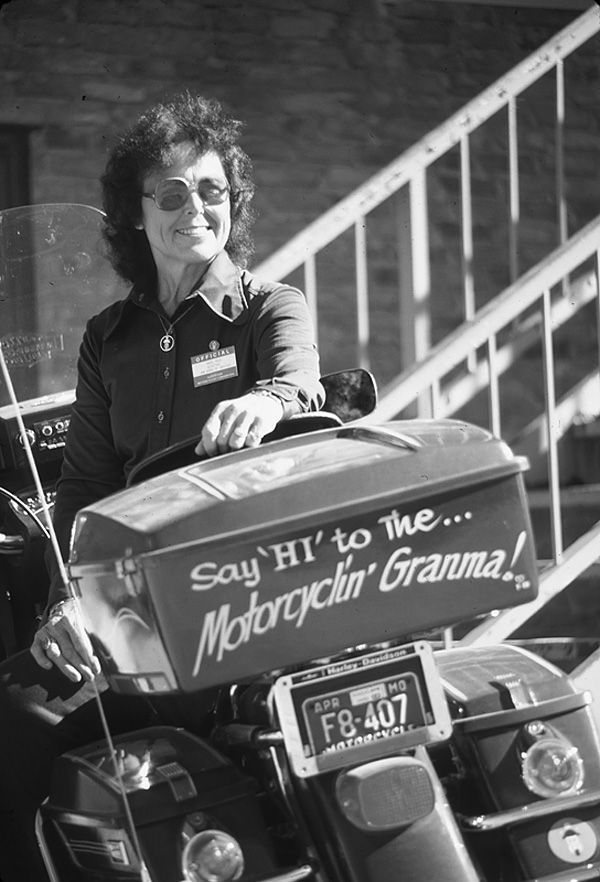 Hazel Kolb (pronounced ‘cob’) was a touring ambassador for motorcycling. Dubbed the "Motorcyclin' Grandma," Kolb was famous for her perimeter ride around the United States. Her 1979 tour around the continental United States on a Harley-Davidson Electra Glide caught the attention of the media and she gave numerous interviews, made national television appearances and eventually co-authored a book about the ride and her life. Kolb’s tireless promotion of motorcycling struck a chord with the American public and helped break down the stereotypical image many had about motorcyclists. She contributed to ushering in an era when motorcycling not only became acceptable, but fashionable among aging Baby Boomers.