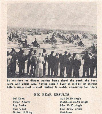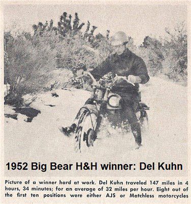His first ride on British metal forever changed Kuhn’s fortunes in racing. He borrowed a rigid-frame Matchless to compete in the 1948 Greenhorn Enduro and ended up winning the important two-day event. That victory made Kuhn an instant celebrity in the world of off-road racing and he picked up sponsorship from British motorcycle importer Frank Cooper.
