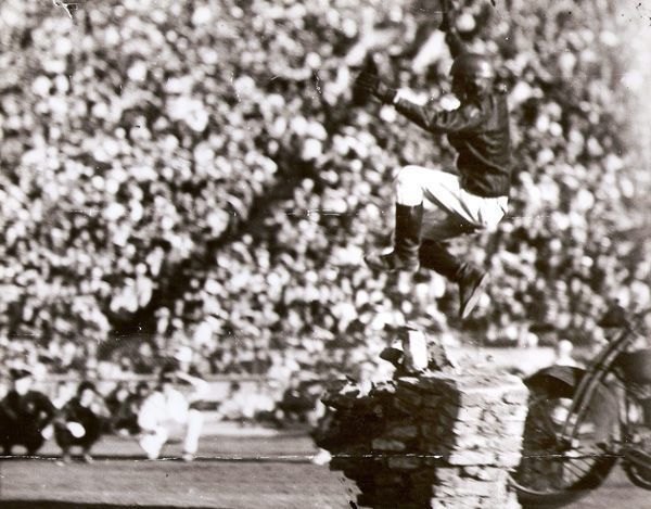 When race promoter J.C. Agajanian put on some thrill shows, Loftin came up with stunts that nearly turned “Aggie” grey. One example was a head-on collision between a car and a motorcycle. Everyone tried to talk Loftin out of it, but he insisted he could make it work. Finally, Carey convinced Agajanian to let him attempt the stunt. Everything went well during the stunt. Loftin hit the car head-on and sailed over the top of the roadster. As the spectators saw Loftin get up and dust himself off someone noticed the car was continuing on out of control. Loftin had kicked the driver in the head during the stunt, temporarily knocking him cold.