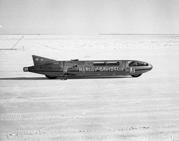 By 1970, the two-strokes were just too fast and reliable. On top of that, Harley-Davidson was going through a low point in trying to develop the new XR racing machine. The first two years the XRs used cast iron cylinders and were notoriously unreliable. For the first time in five years Rayborn went without a national win. The season wasn’t a total write-off, though. That year at the Bonneville Salt Flats in Utah, Rayborn piloted a Harley-Davidson Sportster-based streamliner to a new American and International record of 265.492 mph. The H-D streamliner weighed more than 700 pounds and was almost 10 feet long. Rayborn showed his bravery by stuffing himself back into the machine after suffering several high-speed crashes in the streamliner before he finally set the record.