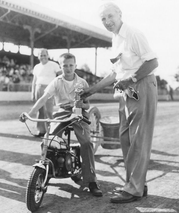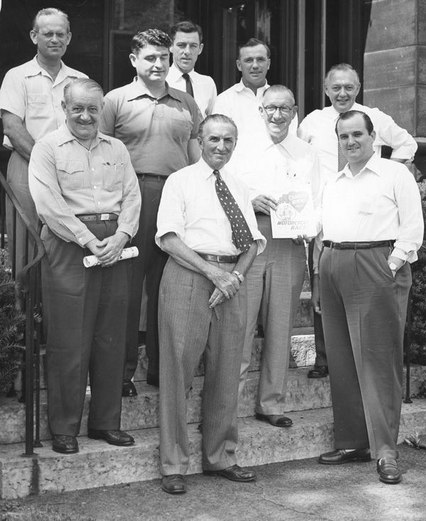 Smith was also in charge of all types of AMA motorcycle competition. Under his guidance the rules for competition gained much needed uniformity and in 1954 Smith helped established the AMA’s first national championship series, the Grand National Championships. Smith not only had a vision for racing’s big picture, but he also enjoyed supervising track preparations on dirt track circuits. He could often be found walking the track before a national, making sure the facilities were in top condition.