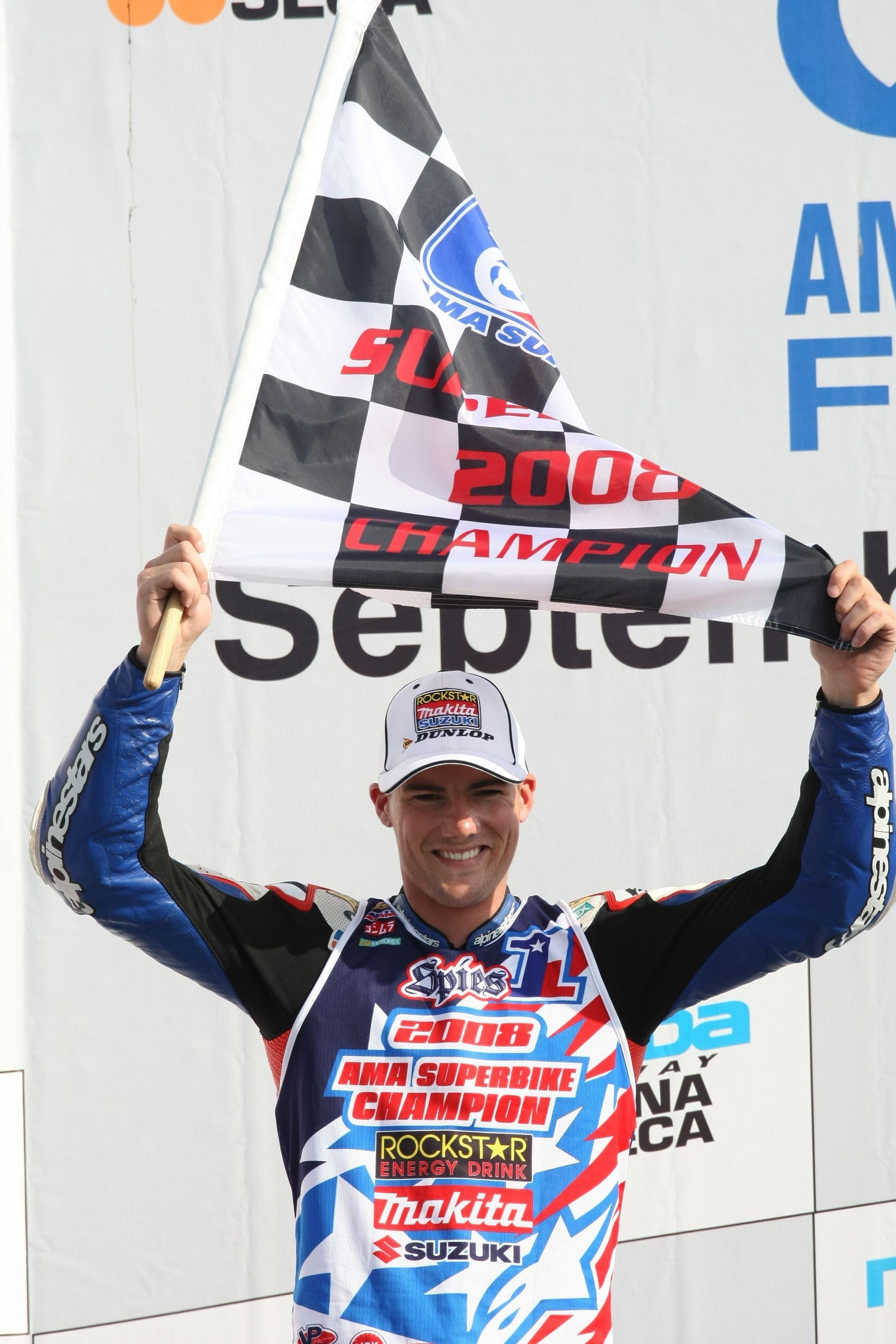 Spies’ AMA National Championships include the 2008, 2007 and 2006 AMA Superbike titles, the 2007 AMA Superstock title, and the 2003 AMA Formula Xtreme title.