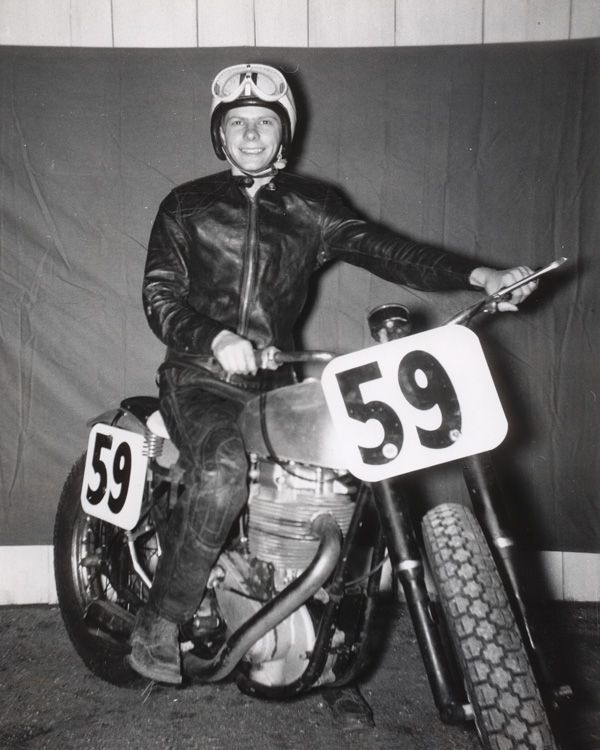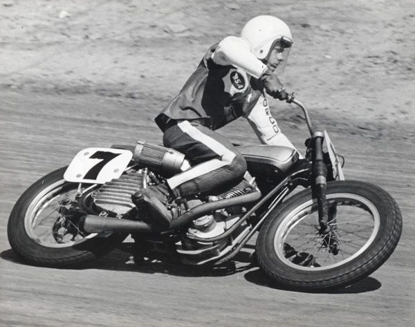 Sammy Tanner was one of the top AMA professional racers from the late 1950s through all of the 1960s. Tanner won a total of seven AMA nationals, including the prestigious Springfield (Illinois) Mile. He rode for the Triumph and BSA factory teams and was one of the heroes of the famous weekly Friday night Ascot Park races in Gardena, California. When Tanner first began racing as a young teenager, he was just 5 feett tall and weighed barely 100 pounds, earning him the nickname the "Flying Flea." He was also known for being one of the first riders on the Grand National circuit to wear white racing leathers.