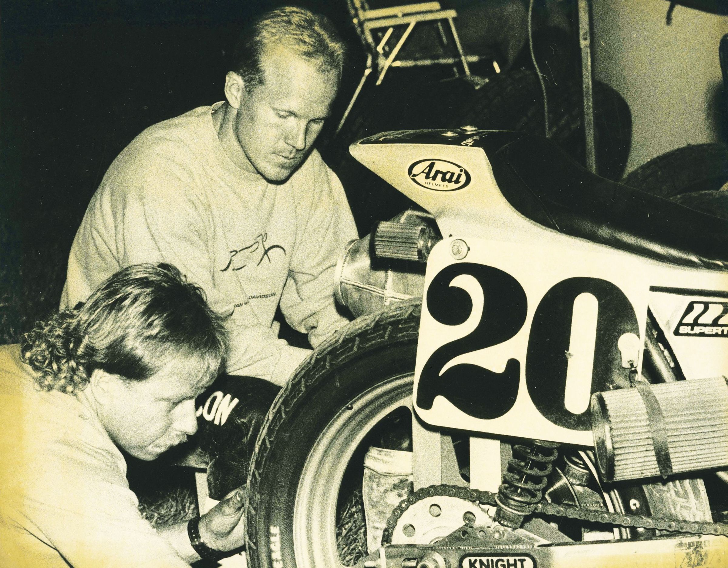 In 1988, the Harley-Davidson racing department hired Tolbert as an outside contractor, teaming him up with Hall of Famer Chris Carr on the Harley-Davidson factory team — a partnership that would continue for more than 20 years. “We started working together when I was 21 and he was 31,” said Carr, “so we grew and learned in step with each other, and that’s a rare relationship, especially in flat track. That relationship not only carried through racing, but away from the track. We became great friends.”