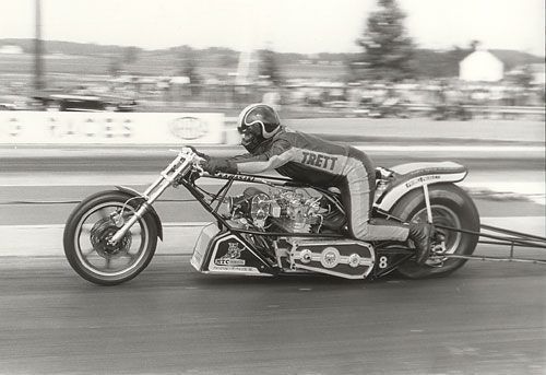 Throughout the 1980s and '90s, Trett refined a series of motorcycles and continued to set records along the way. In all, he won eight national Top Fuel championships under three different sanctioning bodies.