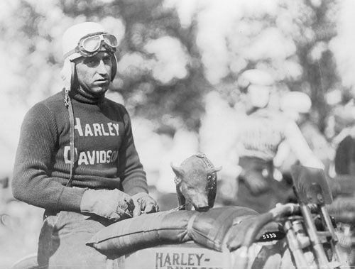 Ray Weishaar was one of the best known and most popular motorcycle racing stars of the 1910s and 1920s. He rode the board and dirt tracks of the country on Harley-Davidsons. Weishaar was fatally injured on April 13, 1924, while competing at Ascot Speedway in Los Angles.