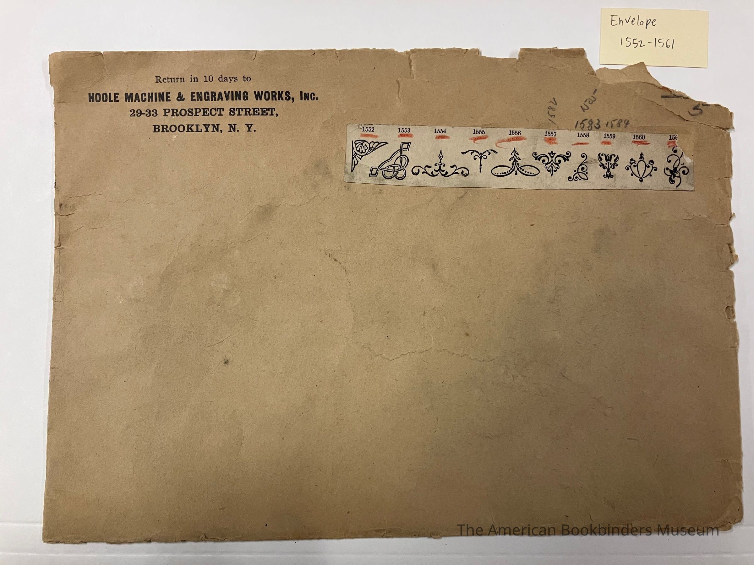 Hoole Envelope Displaying Designs 1552-1561Entry/Object ID