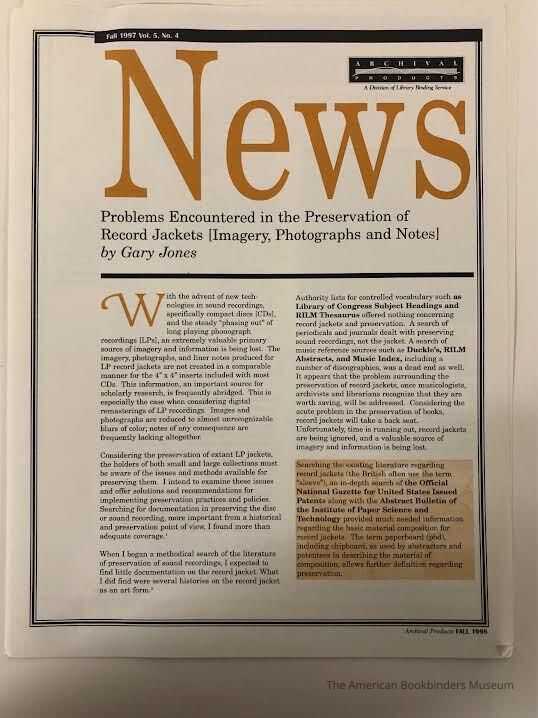 A short publication from Archival Products, focusing on the preservation of record jackets.Collection