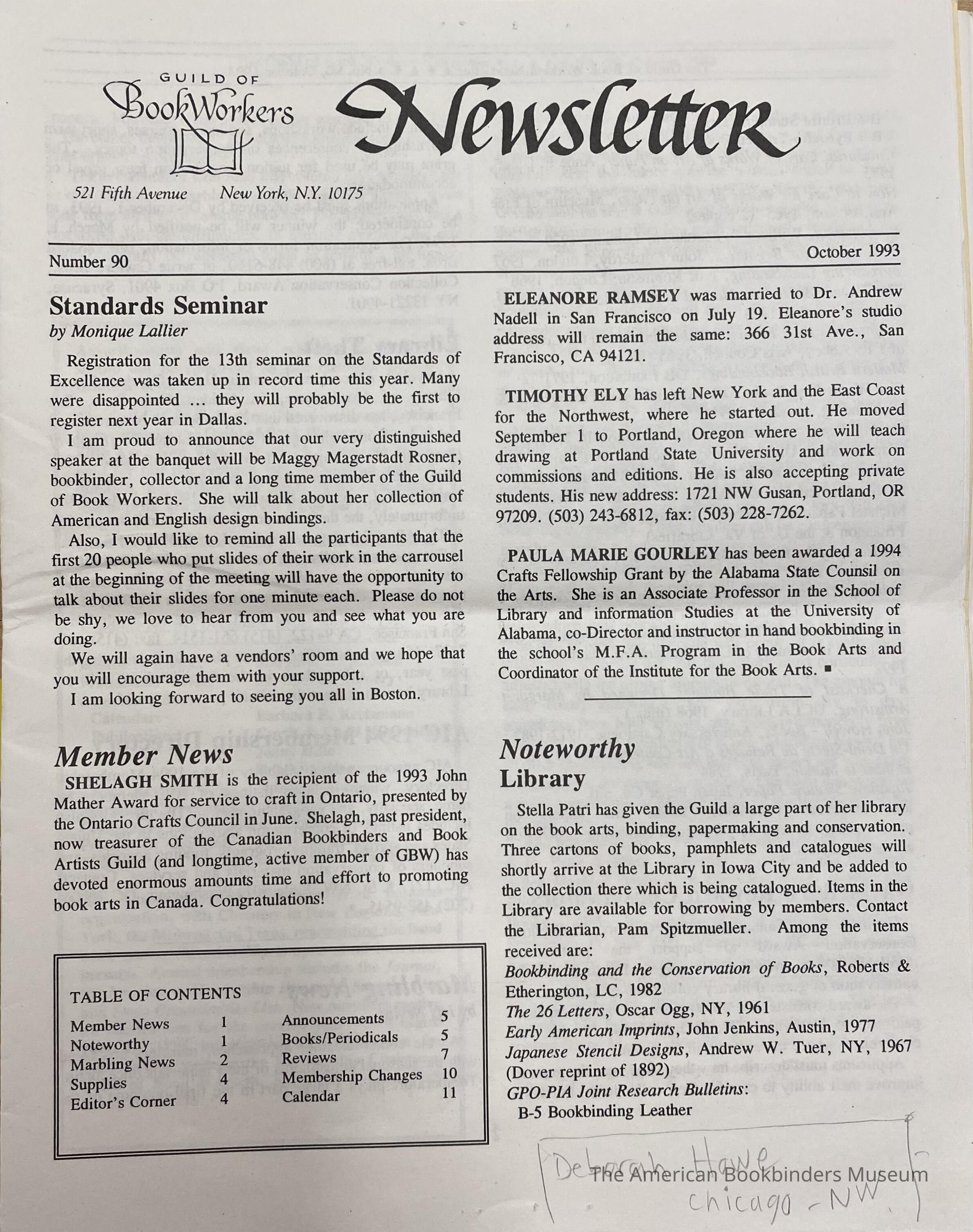 Guild of Book Workers Newsletter ; No. 90 , October 1993Entry/Object ID