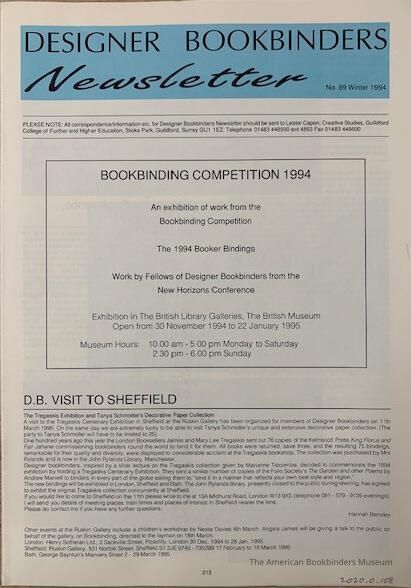 Designer Bookbinders newsletter; No.89; Winter 1994Entry/Object ID