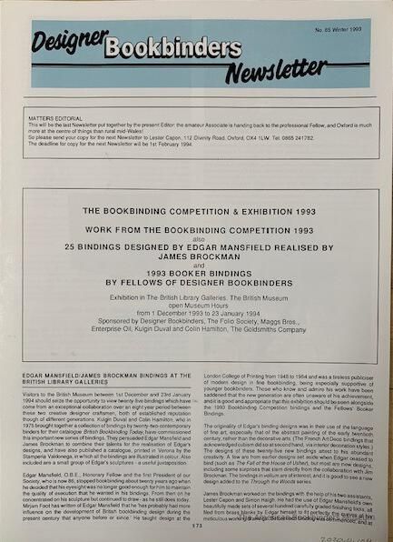 Designer Bookbinders newsletter; No.85; Winter 1993Entry/Object ID