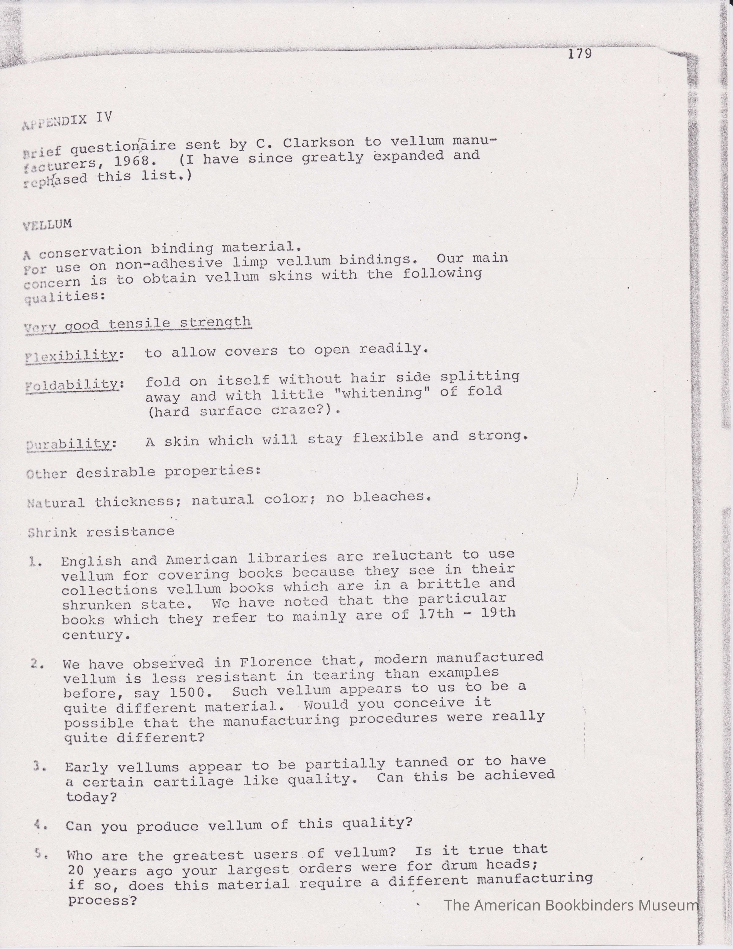 Photocopies of appendix 4 and 5, with a questionnaire and a vellum manufacturer's response, 1968.