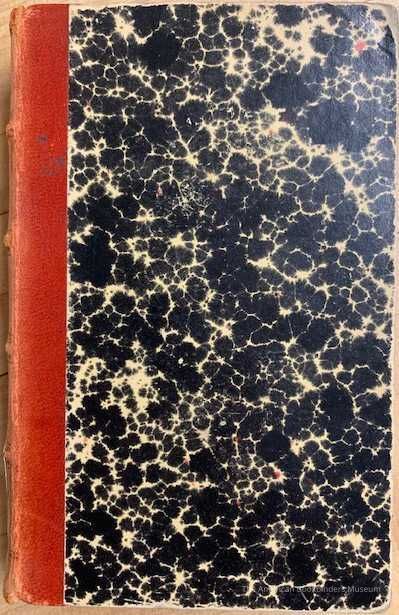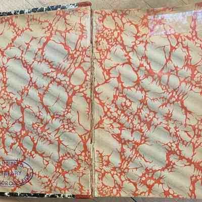Quarter-bound red leather; marbled boards; decorative end-papers