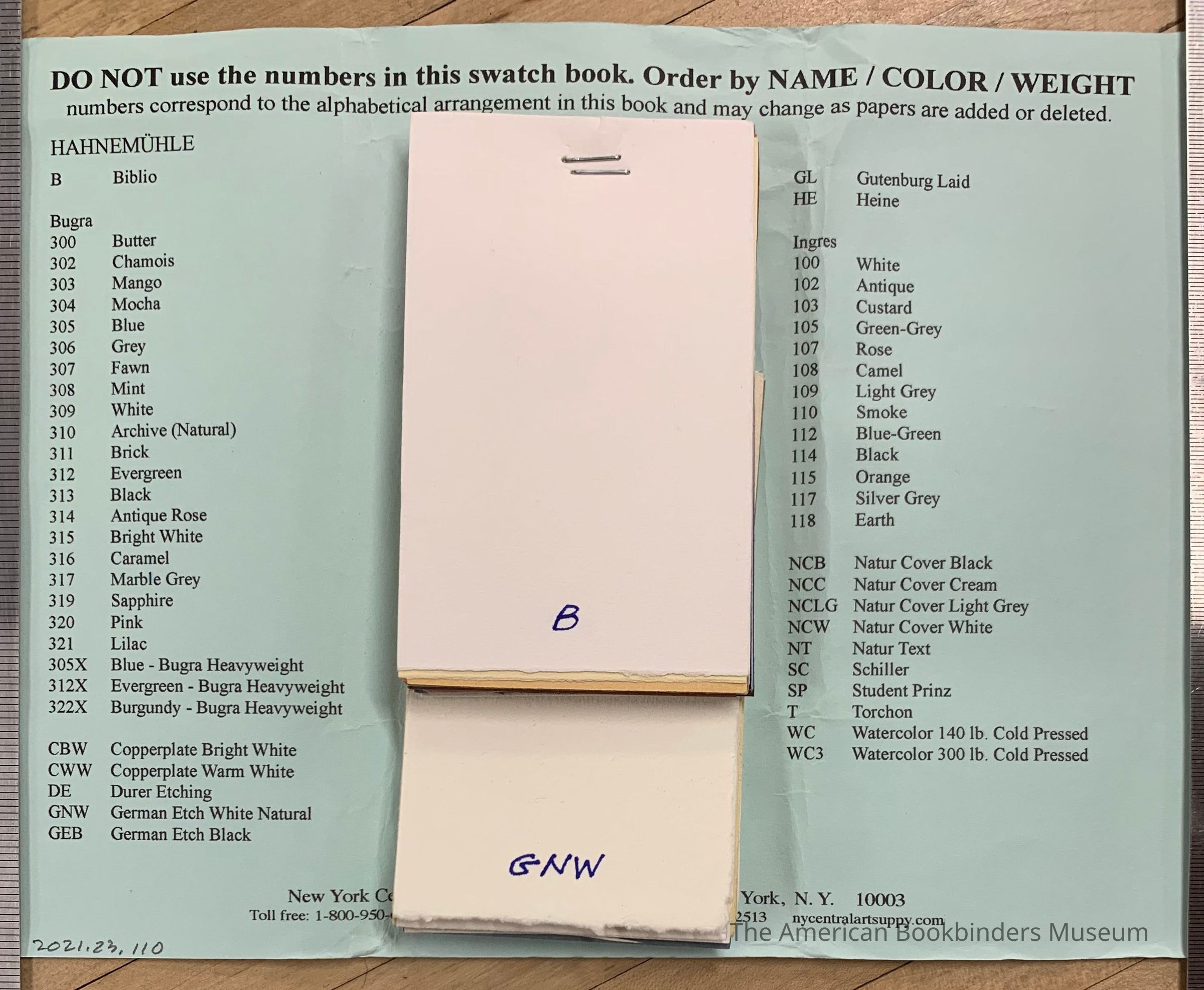 Hahnemuhle [Paper samples]Entry/Object ID