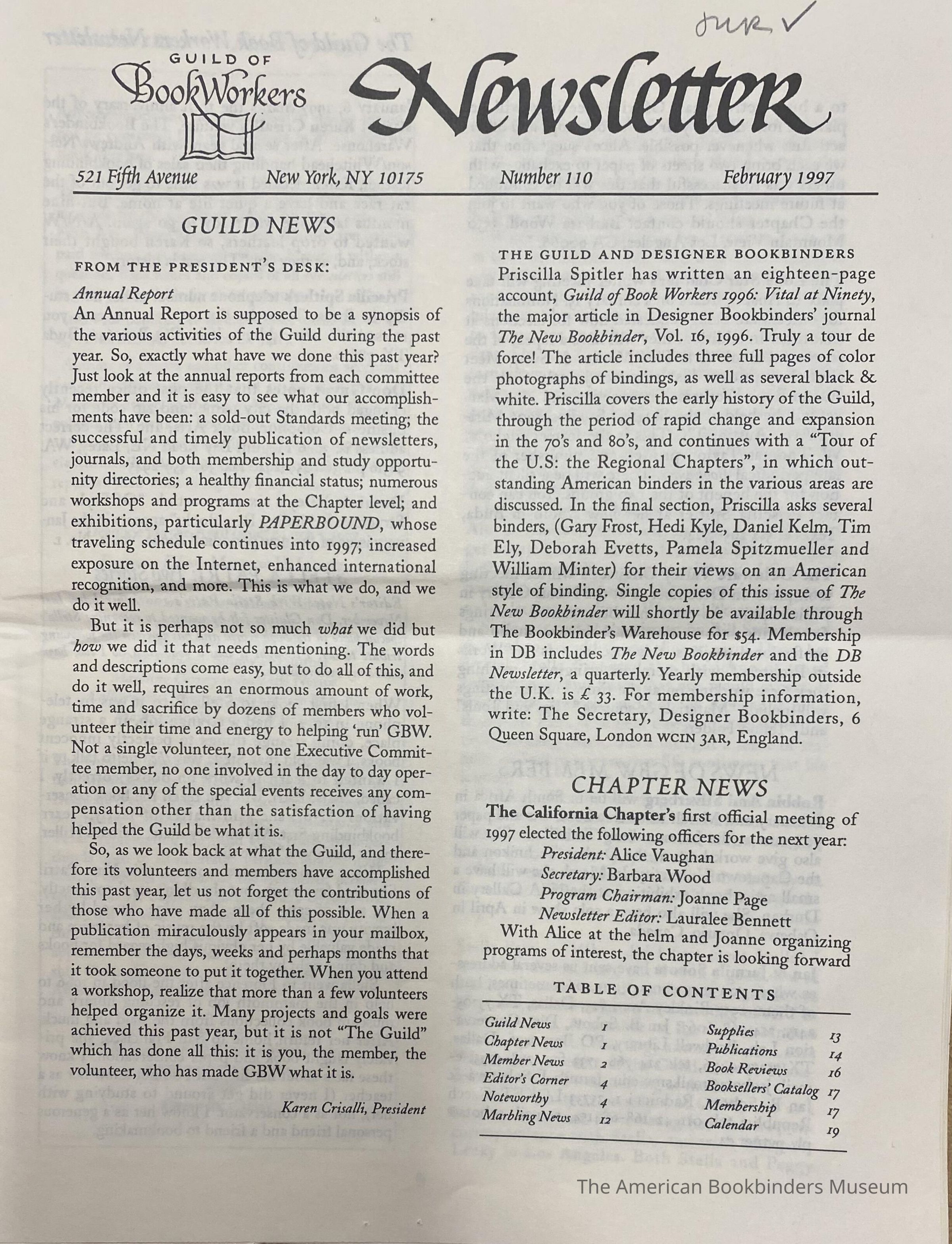 Guild of Book Workers Newsletter ; Number 110 , February 1997Entry/Object ID