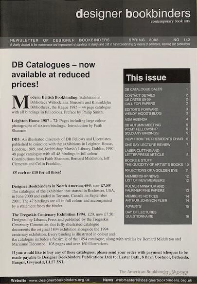 Designer Bookbinders newsletter; No.142; Spring 2008Entry/Object ID