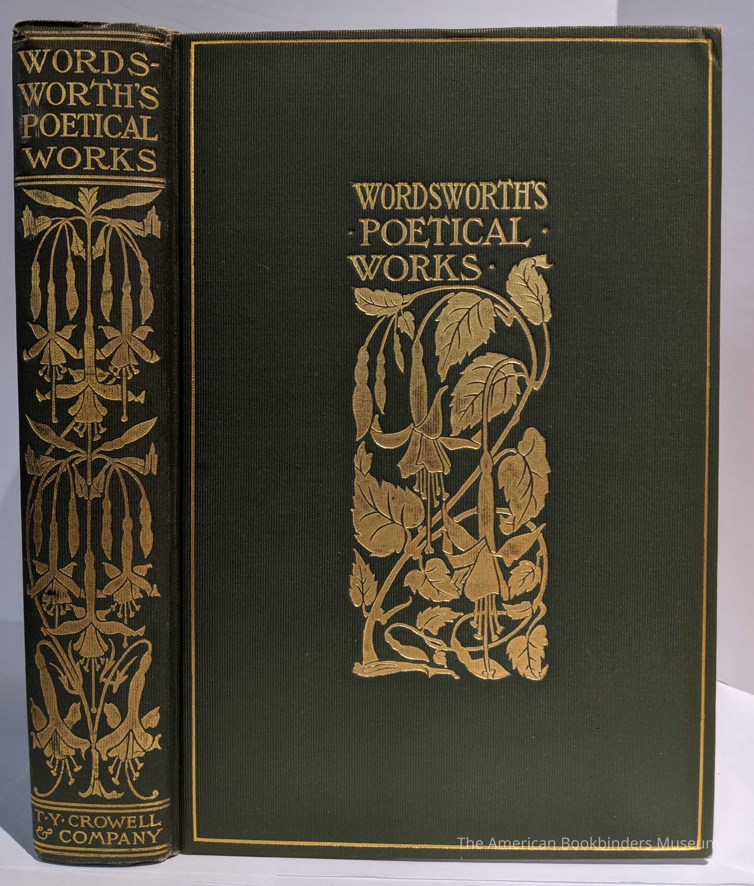 Bound in olive green vertically-ribbed cloth with an art nouveau gilt stamped central rectangular panel of a hanging fuchsia vine and title to the front cover. Gilt ruled border. Elaborate gilt stamped fuchsia design to full length of spine. Top edge gilt.Notes