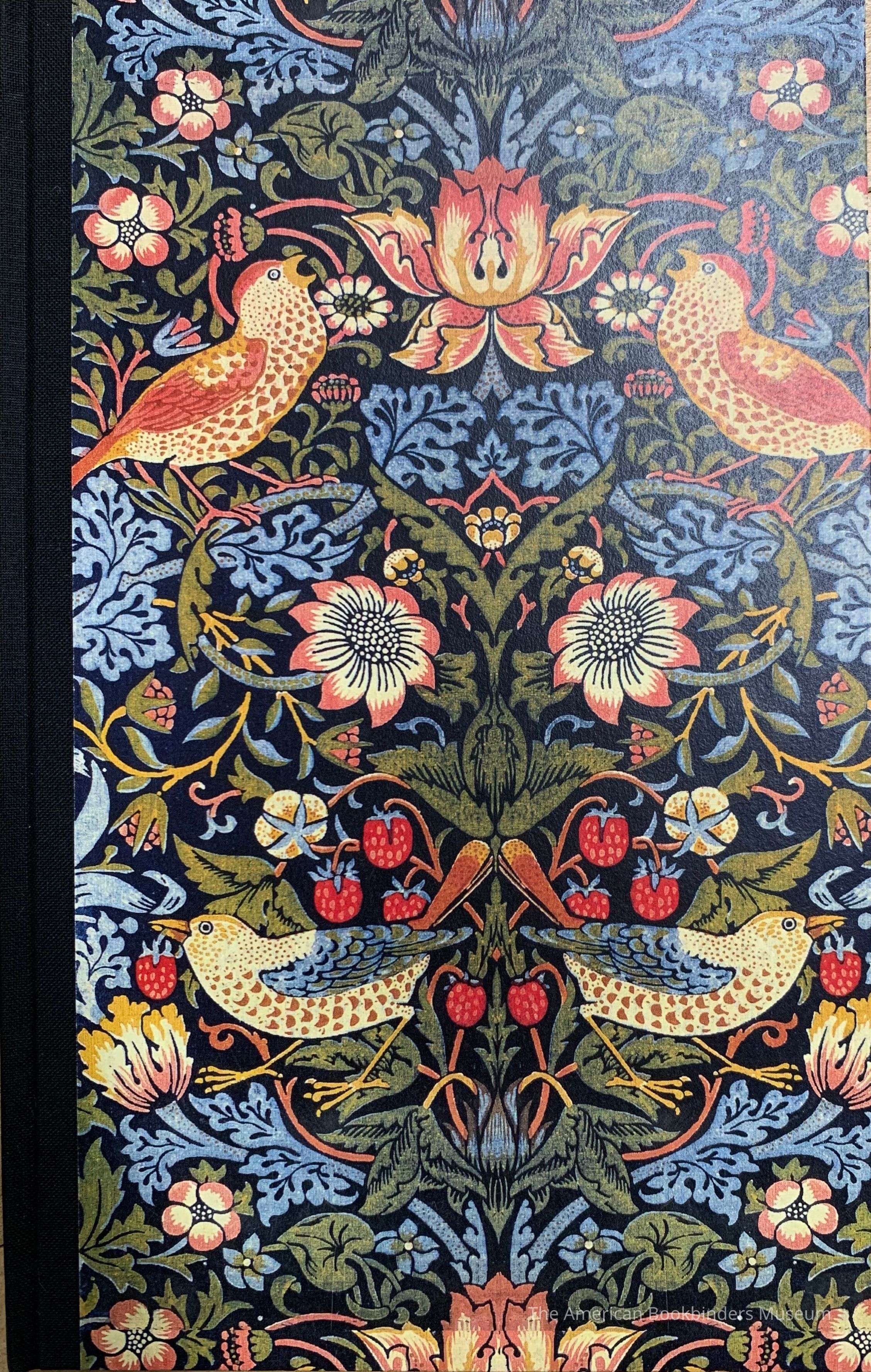Boards covered in paper with Morris design Morris designs on page borders.