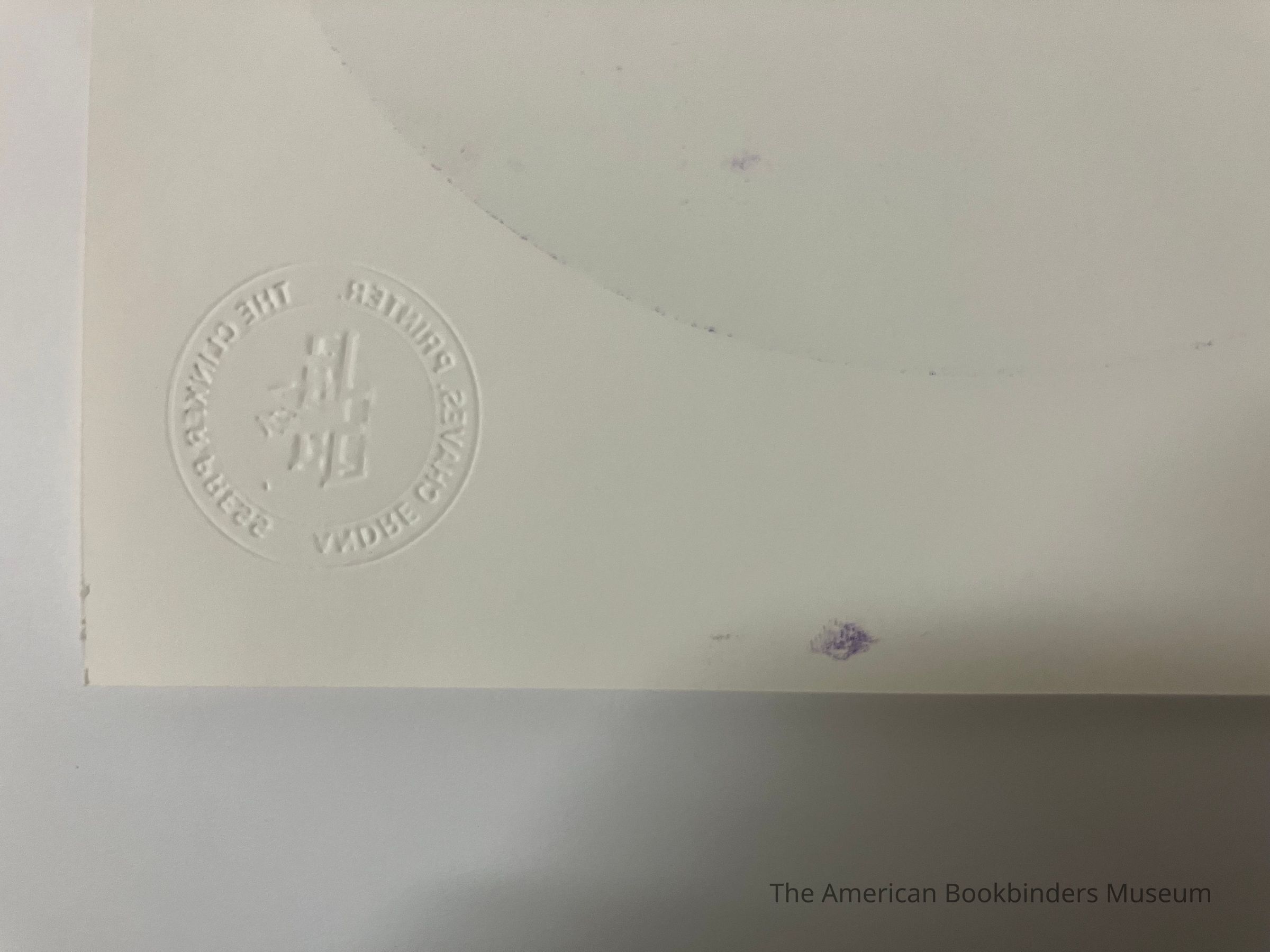 A purple and brown print of geometric shapes. On the left is the main in white. Subtitle at the top, in blue letters. Author on the right also in white. A blue hemisphere at the bottom. Printer's mark is embossed in the lower right corner.Collection