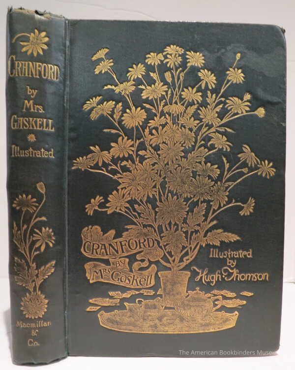 Bound in dark green cloth with binding design by Hugh Thomson featuring a large potted daisy, a tea service, and playing cards. Elaborate floral gilt spine decoration. Green coated endpapers. All edges gilt.Notes