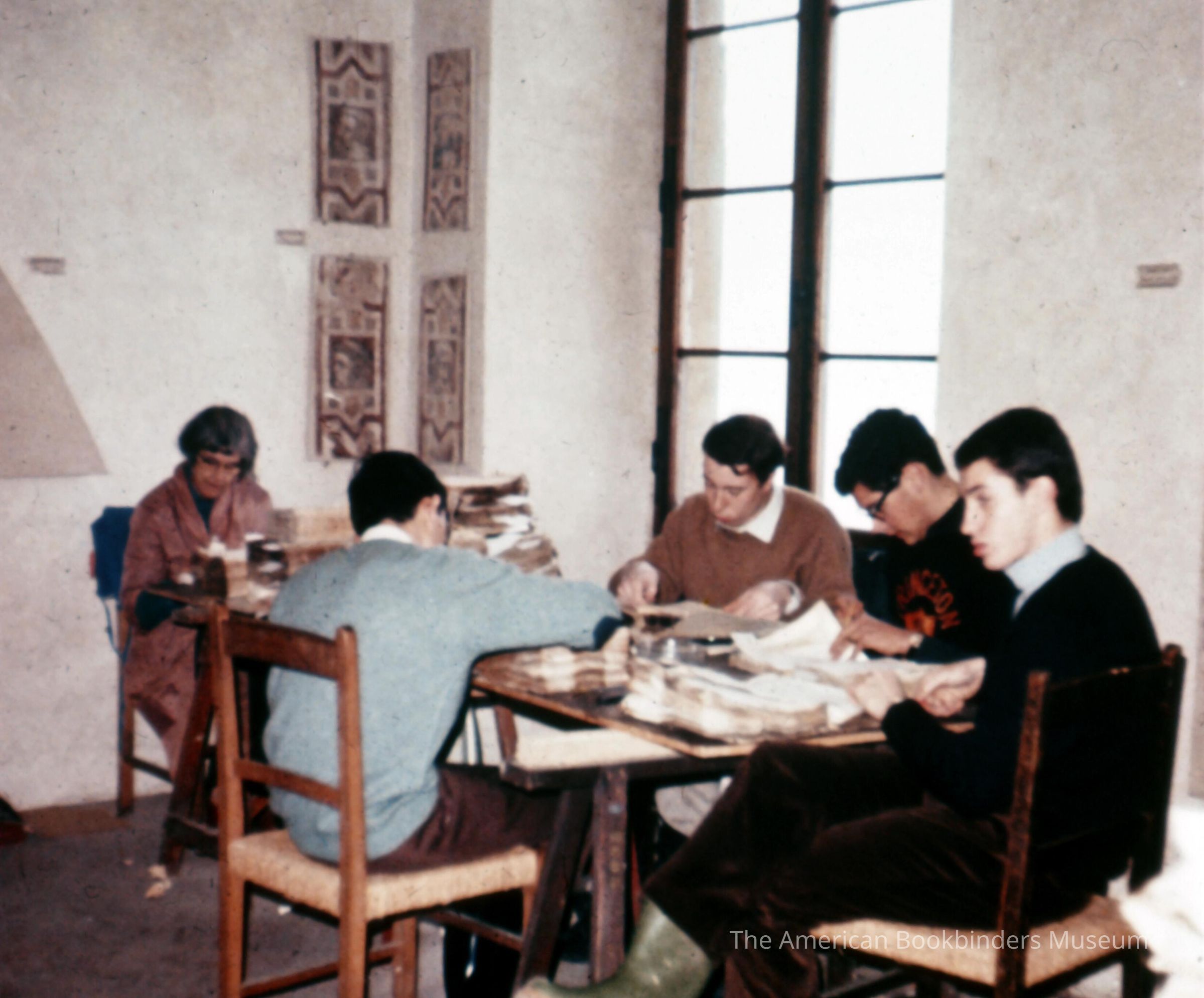 Scan of a photo showing five individuals around a tableEntry/Object ID