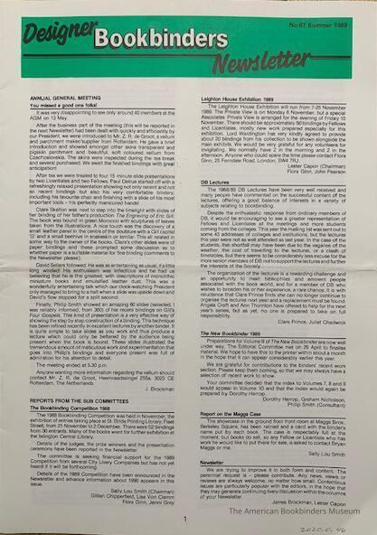 Designer Bookbinders newsletter; No.67; Summer 1989Entry/Object ID