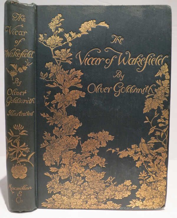 Bound in dark green cloth with unsigned art nouveau cover design attributed to Hugh Thomson. Vertical floral, branch, and bird motif. Green coated endpapers. All edges gilt.Notes