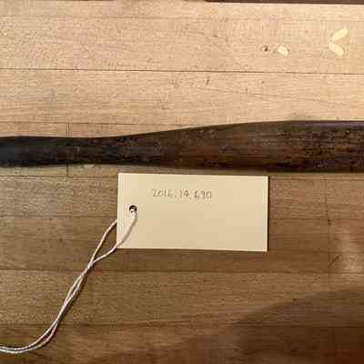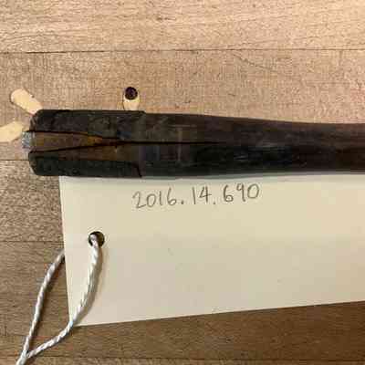 Unused wood handle. Has a collar and a wedge in the top, once used to keep the head of the tool in place.