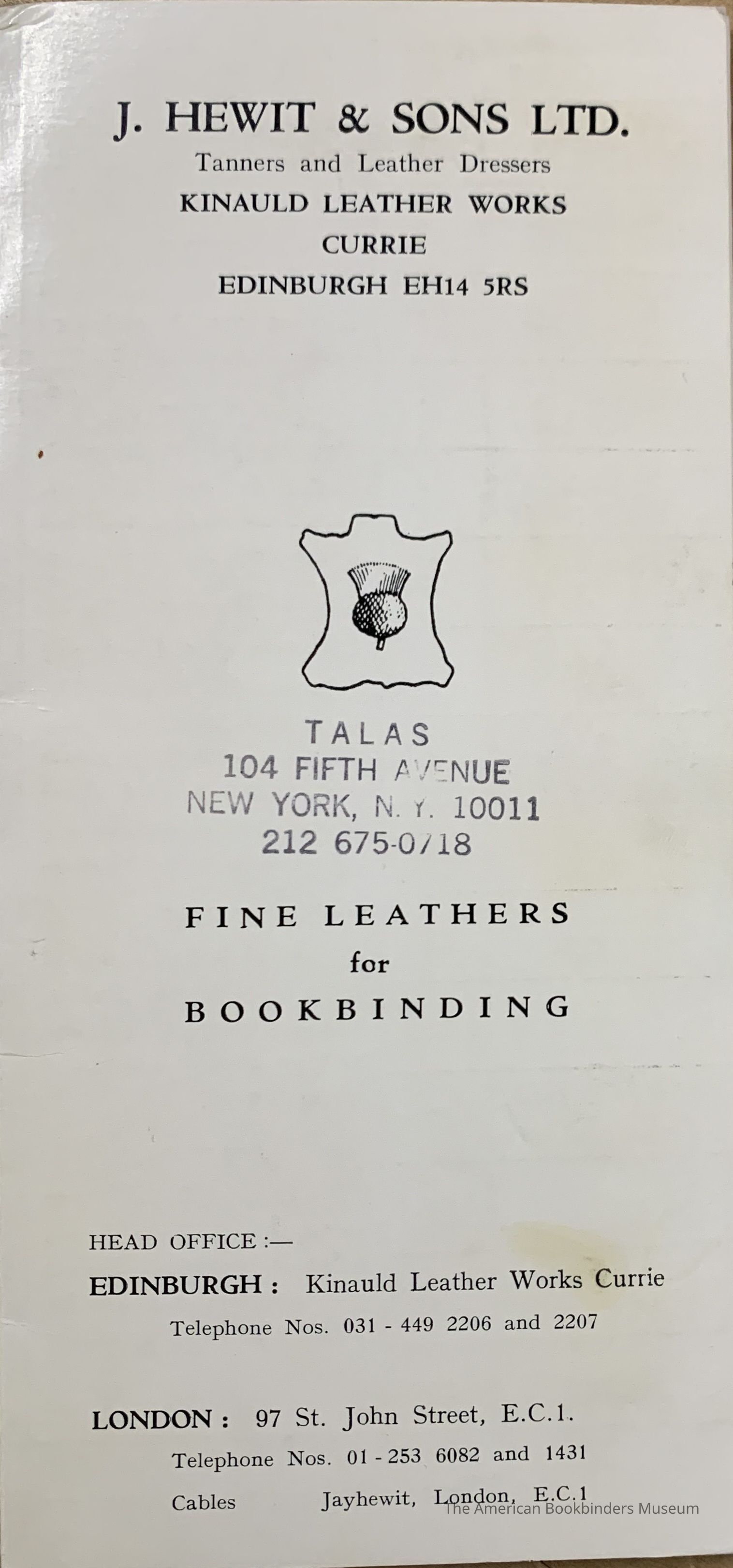 J. Hewit & Sons Ltd. ... Fine leathers for bookbindingEntry/Object ID