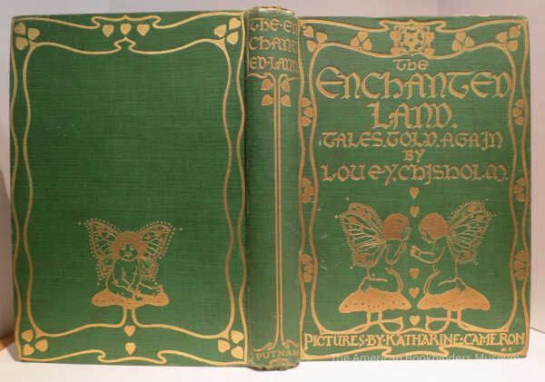 A striking art-nouveau binding in green cloth and gilt depicting kneeling winged fairies within a bordered heart decoration, with a distinctive art nouveau spine decoration. Binding is signed with the monogram of Cameron, who designed the binding as well as illustrated the book. Gold endpapers, all edges gilt.Notes