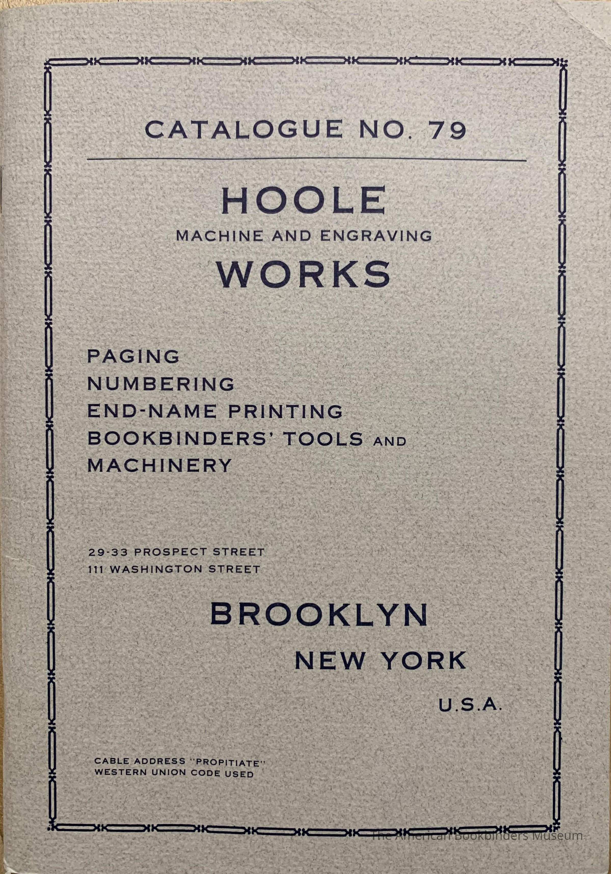 Catalogue No.79: paging, numbering, end-name printing, bookbinders' tools and machineryEntry/Object ID