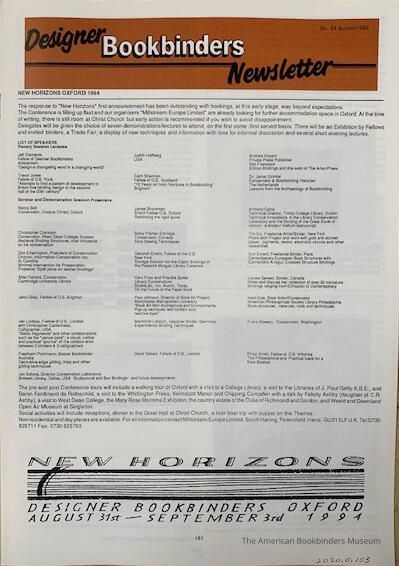 Designer Bookbinders newsletter; No.84; Autumn 1993Entry/Object ID