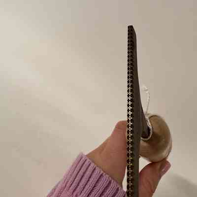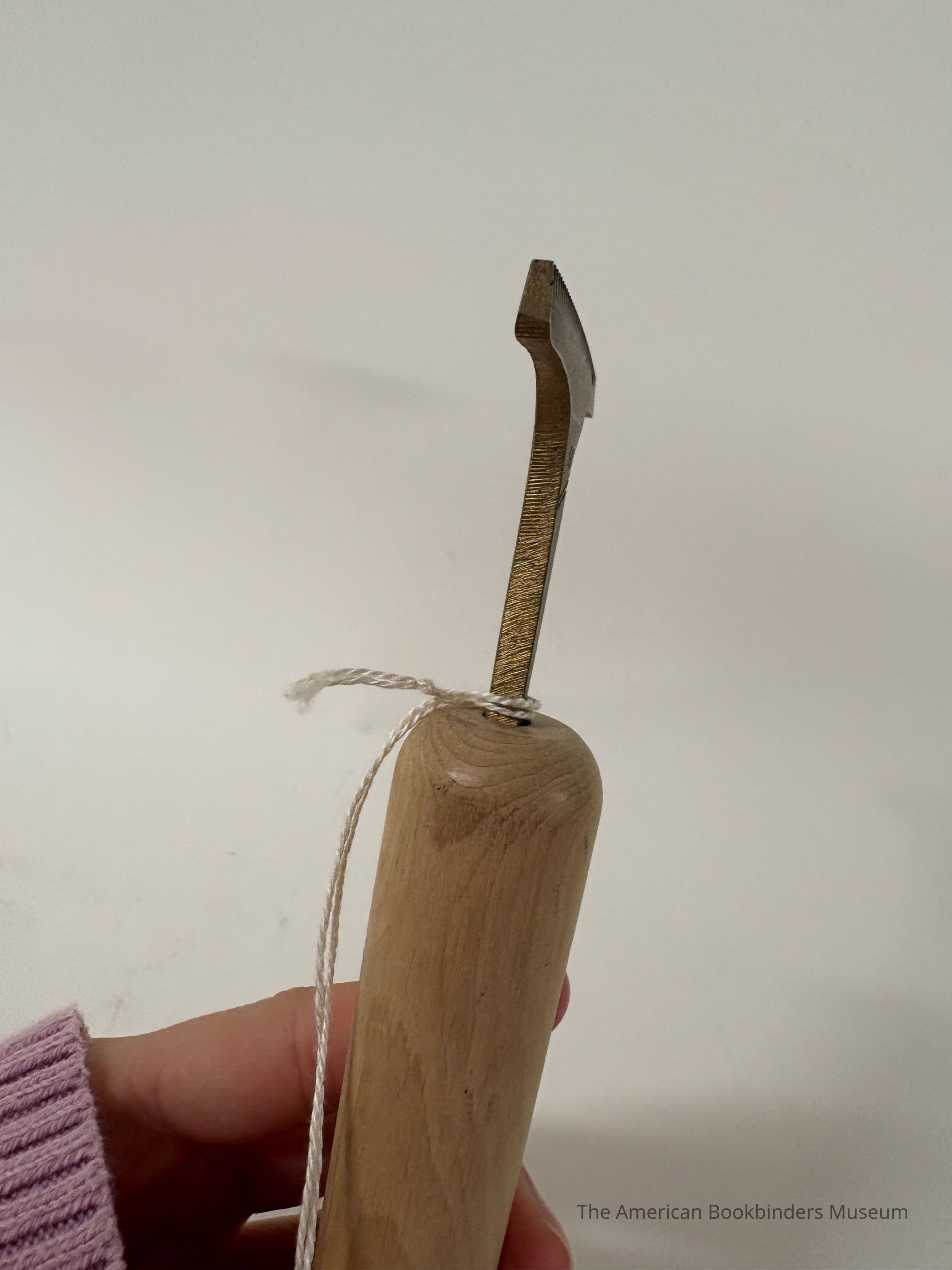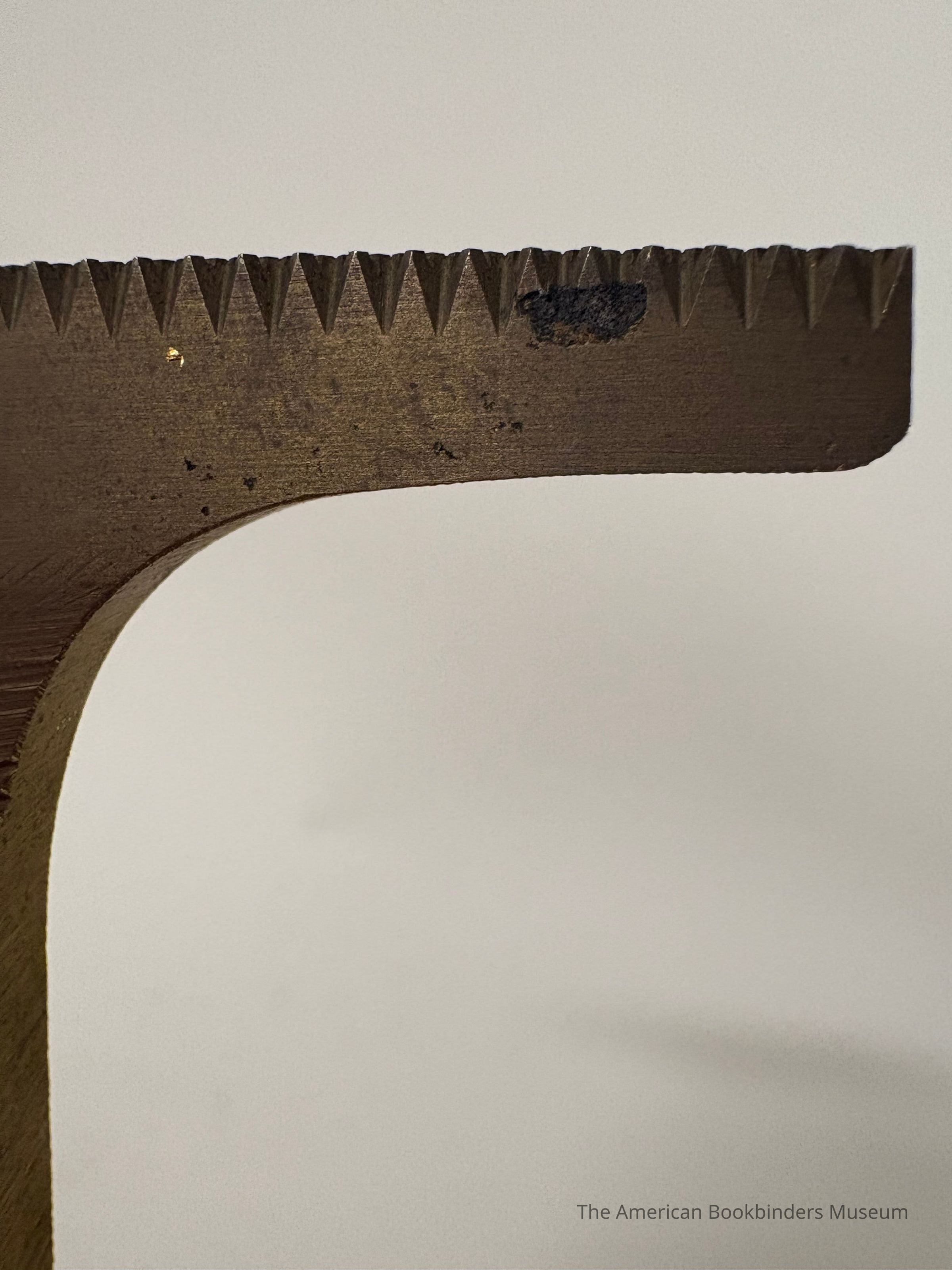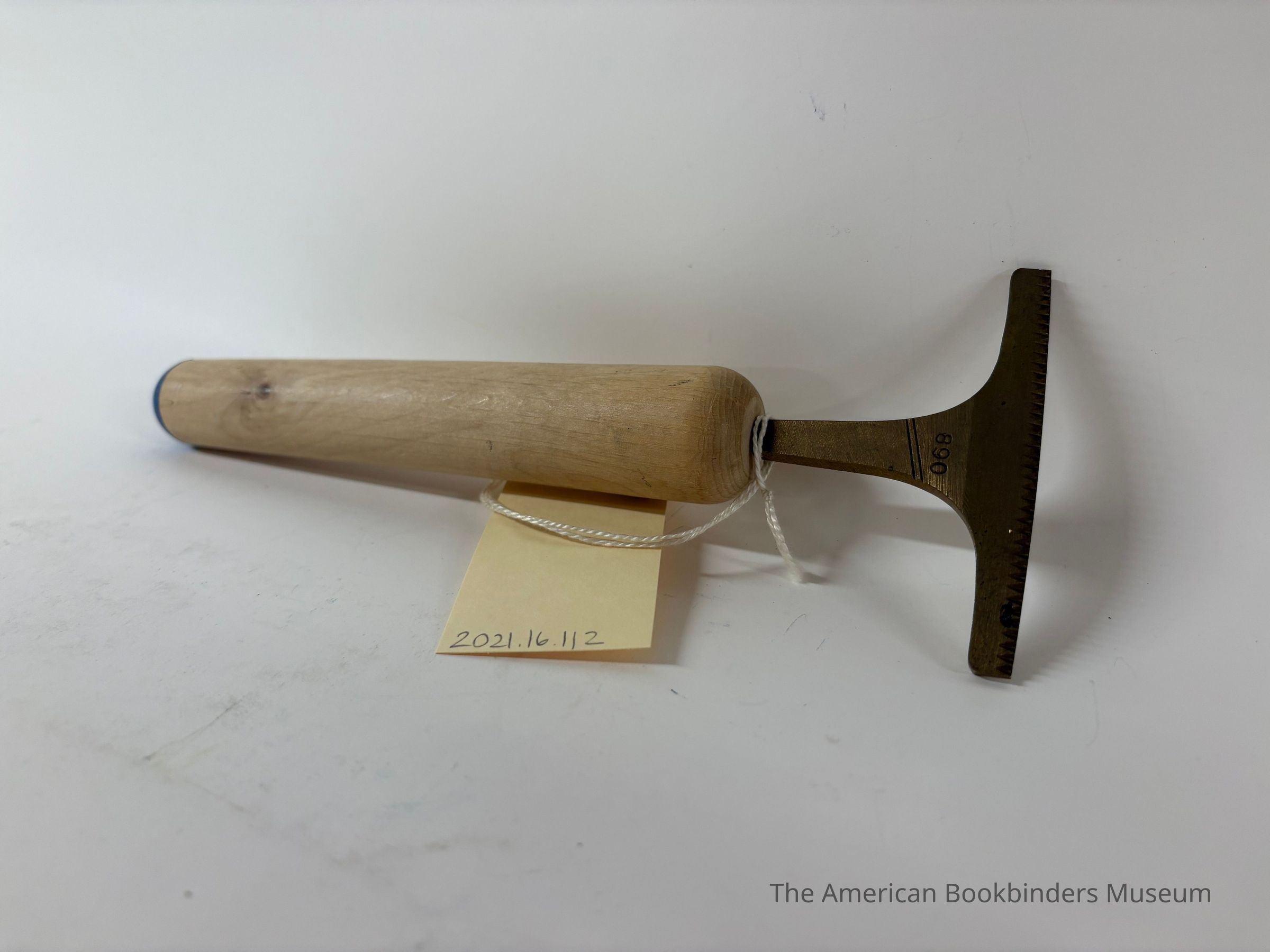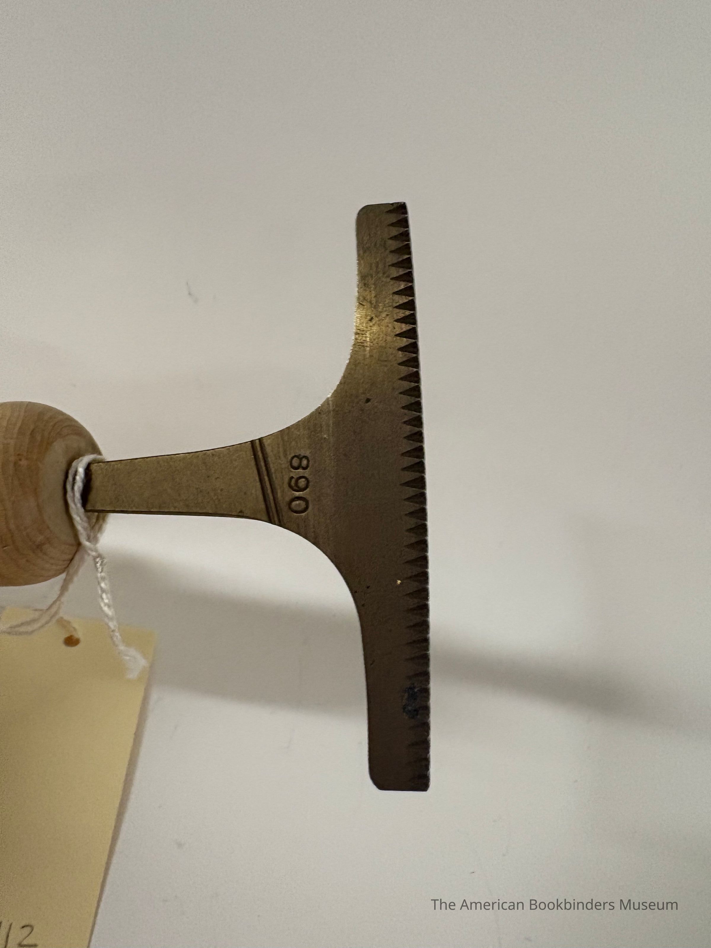 Decorative brass pallet of an 8 cm clover shape motif on a wood handle. The end of the handle is painted blue. Manufacturer is Morand & CIE.Collection