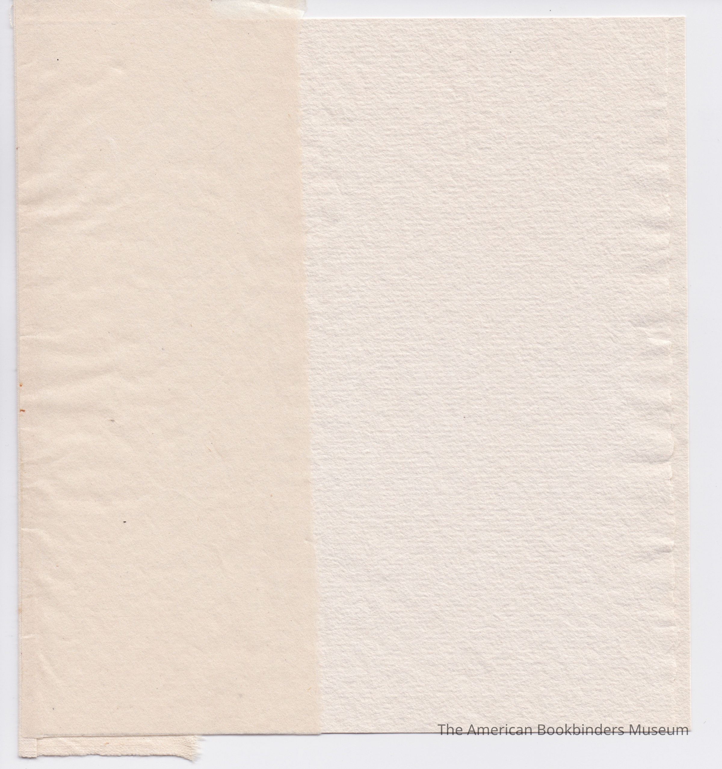 Watercolor paper as the 'textbook', with a strip of thin paper over the fold. Over top on one side is fabric.Collection