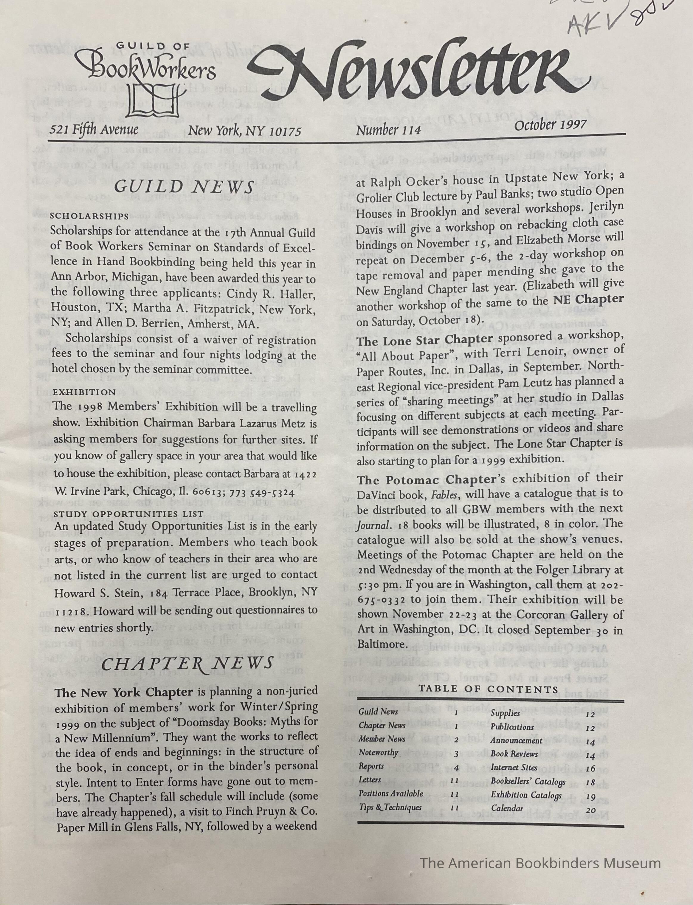 Guild of Book Workers Newsletter ; Number 114 , October 1997Entry/Object ID