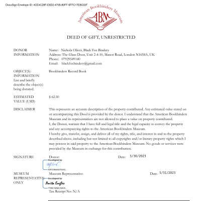 A Bookbinder's Record of Bindings.Entry/Object ID