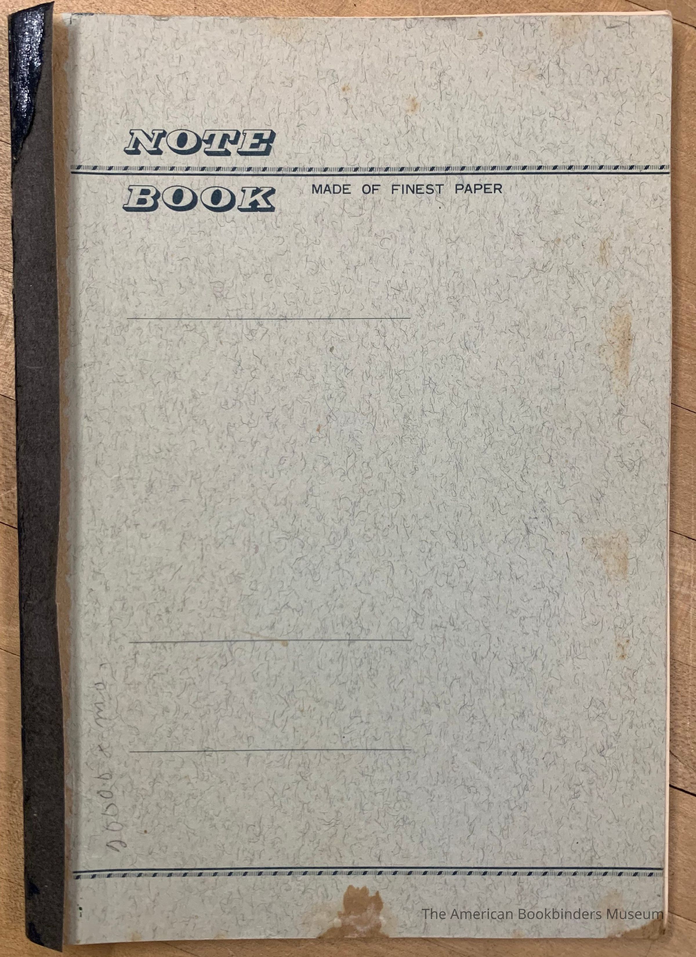 Sewn paper notebook, grey paper cover. "Made of the finest paper"