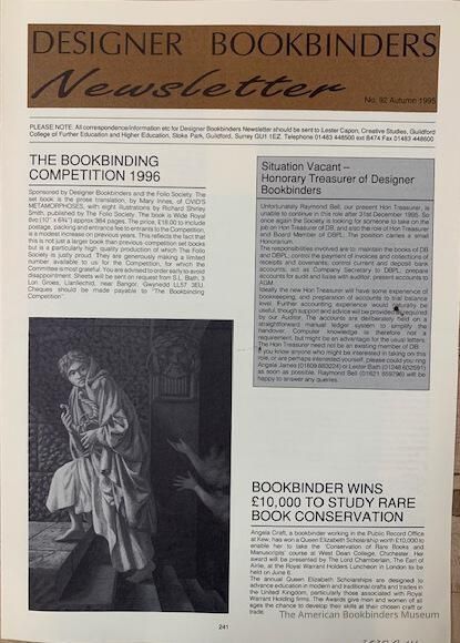 Designer Bookbinders newsletter; No.92; Autumn 1995Entry/Object ID