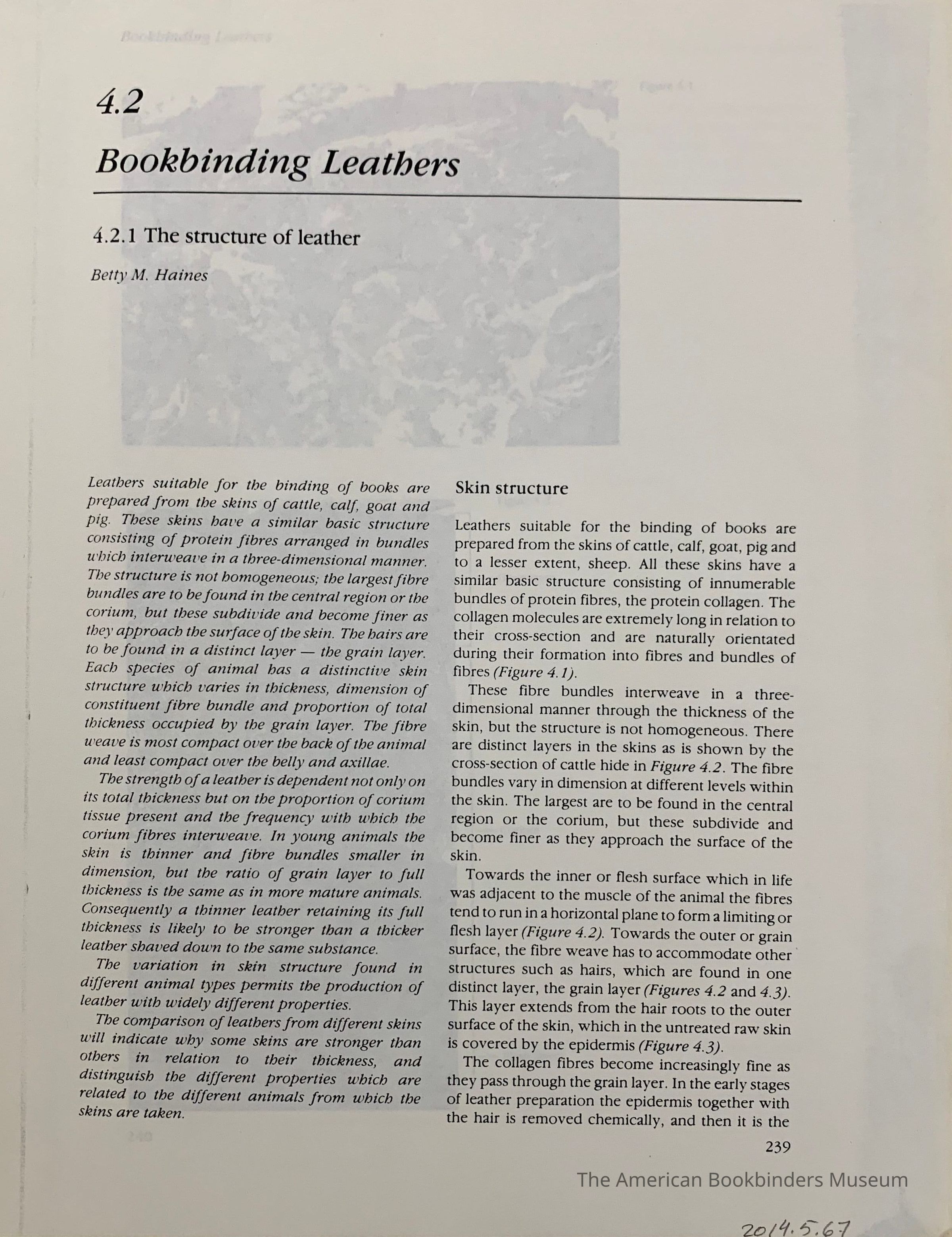 Bookbinding Leathers : 4.2.1 the structure of leather / by Betty M. Haines.Entry/Object ID