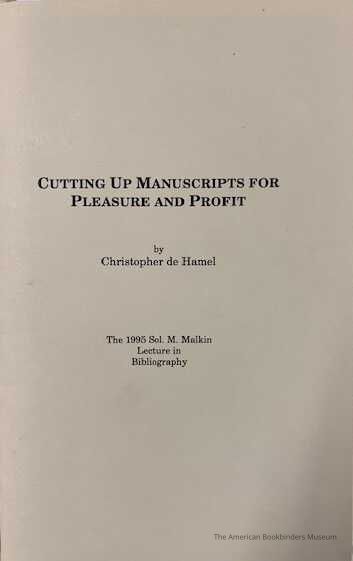 Cutting up manuscripts for pleasure and profit / by Christopher de Hamel.