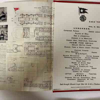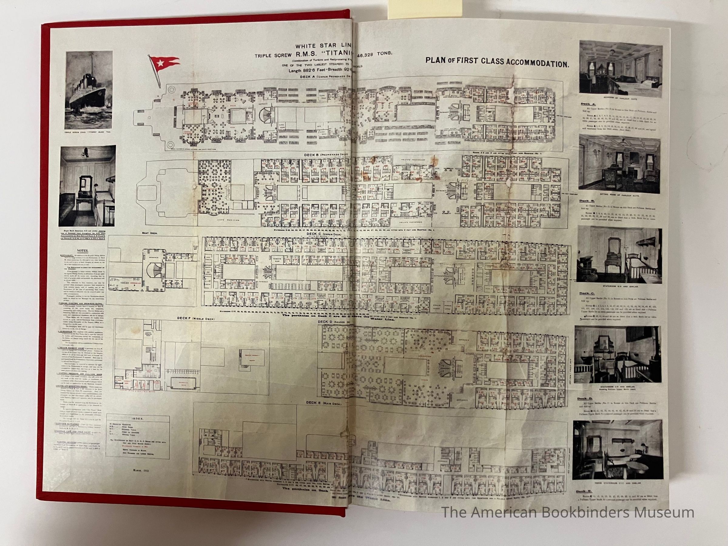 Rounded and backed case bound with glued on endbands and tipped-in fontispiece. Loose item is a facsimile of first class lunch menu.Notes
