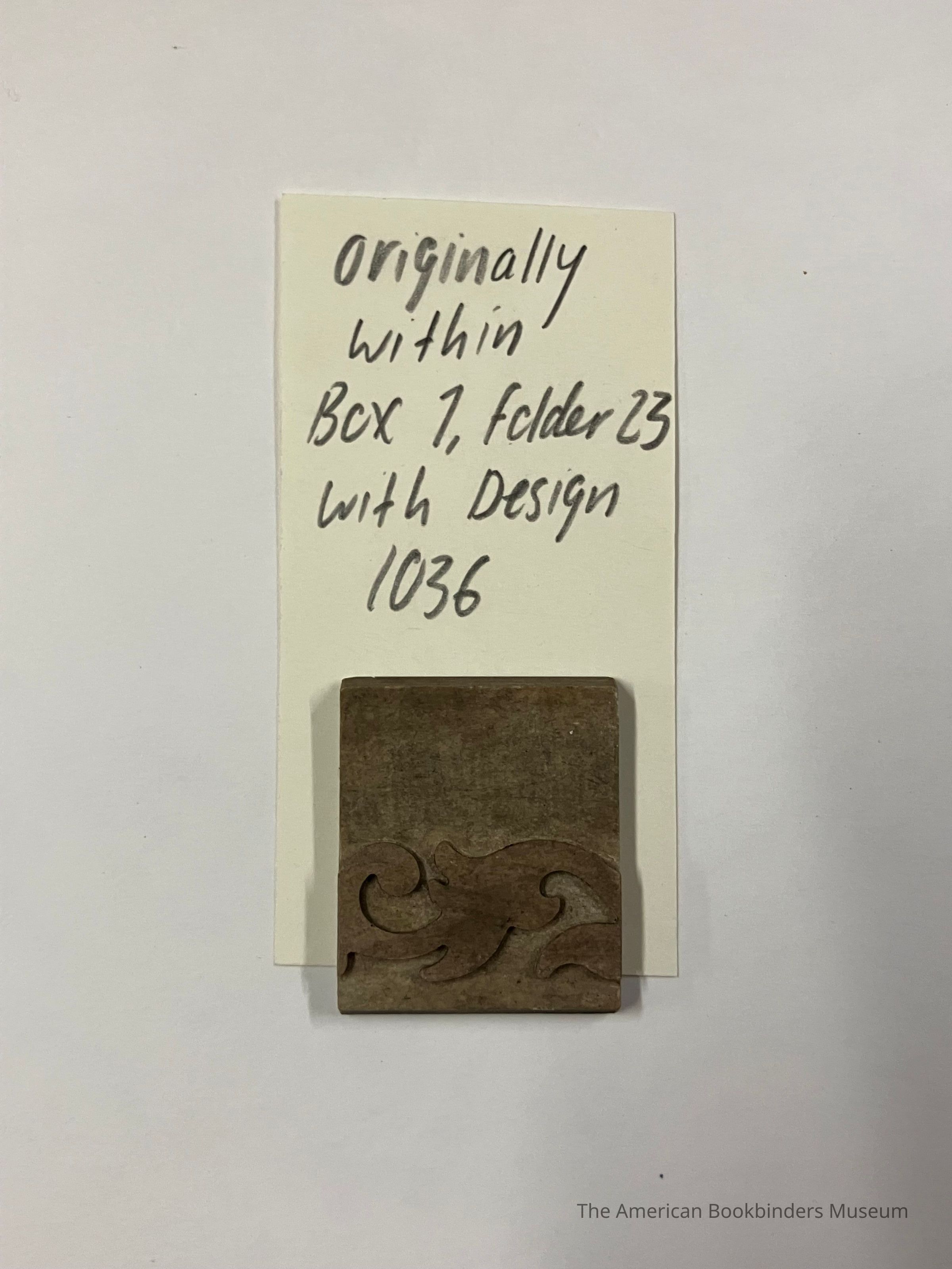 Plastic stamp dies. No design number. Another stamp die was found in box 1 with design 1036.Use