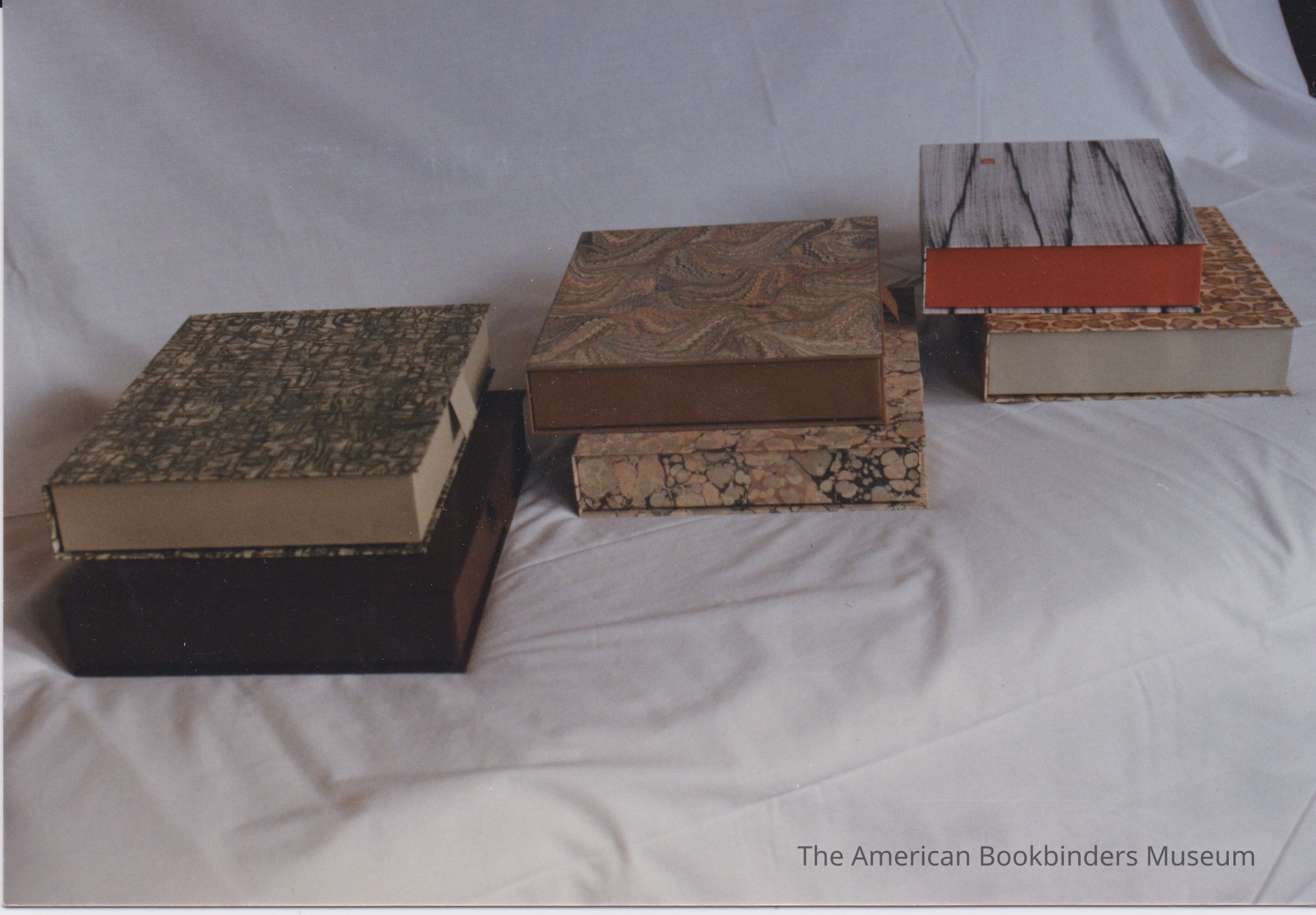 Six drop spine boxes, in three rows and stacks of two. Same boxes are shown in 2023.9.11.cp through 2023.9.11.ct. The same setup is shown in 2023.9.11.cr and 2023.9.11.ct, at different angles.Collection