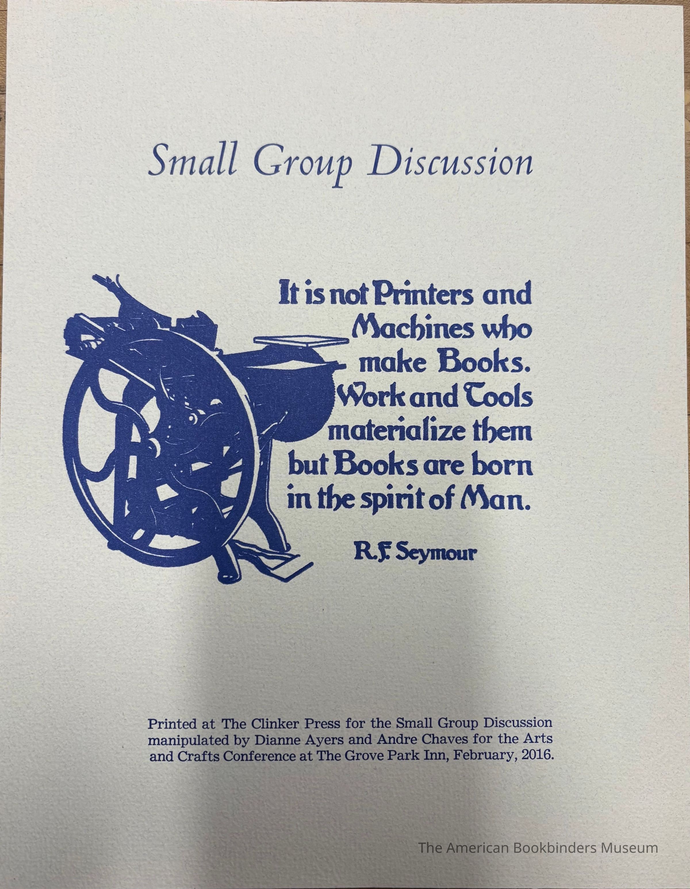 Quote by R.F. Seymour next to an illustration of a printing press.Collection