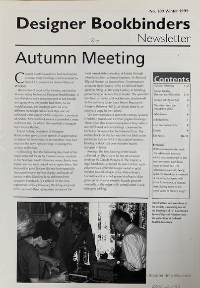 Designer Bookbinders newsletter; No.109; Winter 1999Entry/Object ID