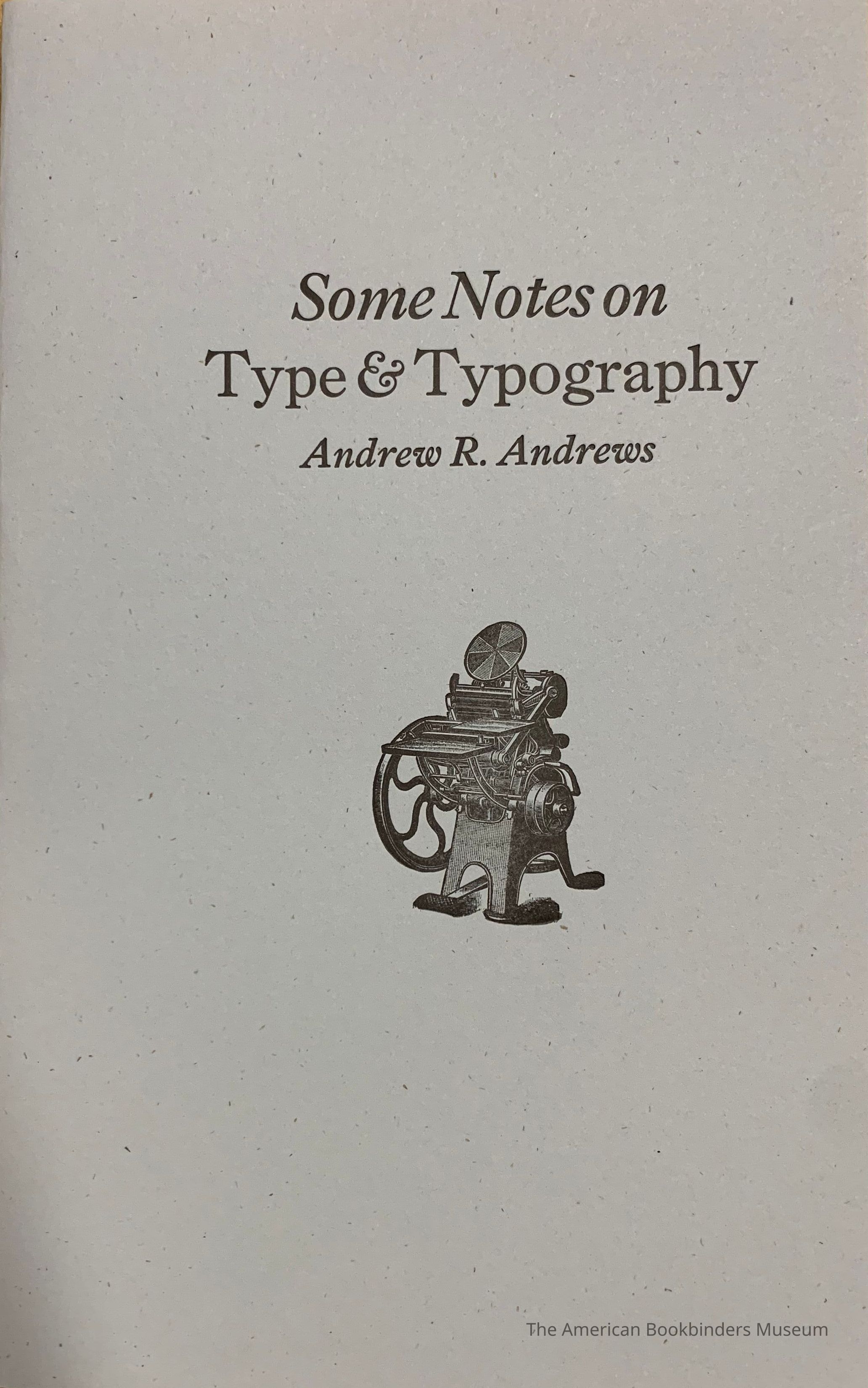 Some notes on type and typography / Andrew R. AndrewsEntry/Object ID