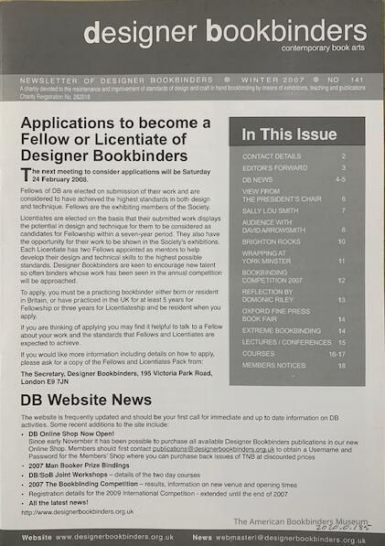 Designer Bookbinders newsletter; No.141; Winter 2007Entry/Object ID